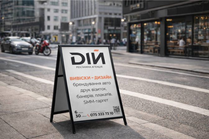 • Штендери (Спотикач): Надійні металеві конструкції, які направляють потік клієнтів прямо до ваших дверей.
